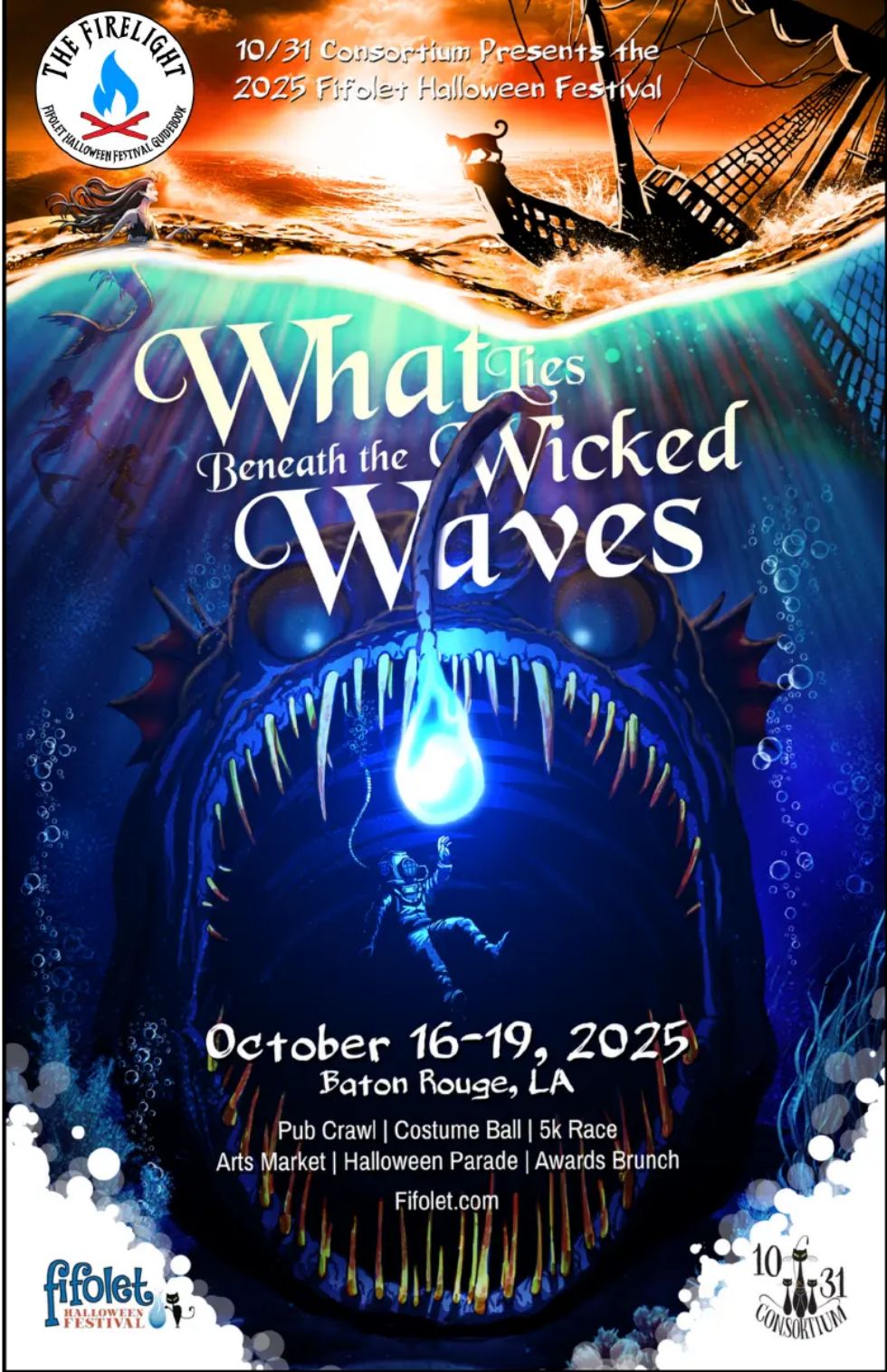 The Firelight Guidebook is your ultimate guide to Baton Rouge's largest free Halloween event — the Fifolet Halloween Festival! Get all the gory details on the Zombie Pub Crawl, Halloween Ball, Fifolet 5K, Arts Market, Halloween Parade, and Awards Brunch. Plus, discover local Halloween happenings, meet past and present Festival Royalty, and learn how 10/31 Consortium brings spooky fun to life for a great cause!